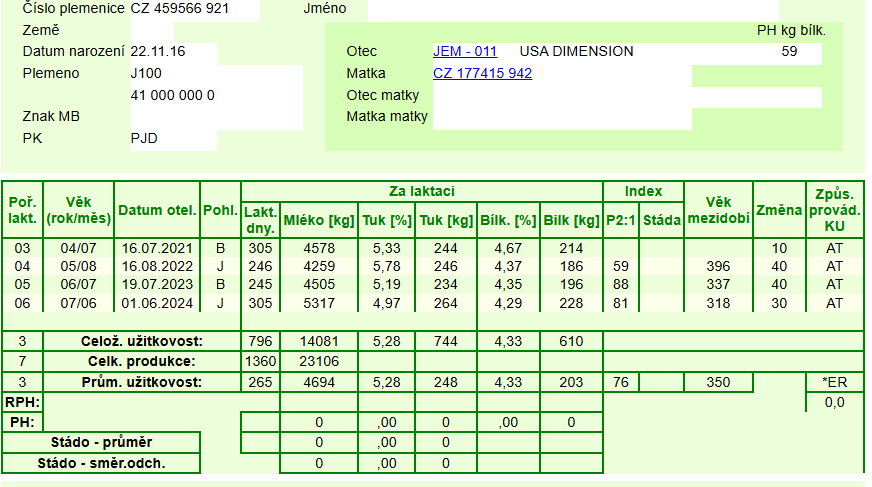 matka: 17,5 kg/den, T% 4,97, B% 4,29